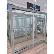 PUERTA CORREDERA MINIMALISTA EN ALUMINIO CON ROTURA PUENTE TERMICO CON CRISTAL DOBLE